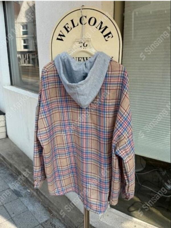 フード付きチェックシャツ