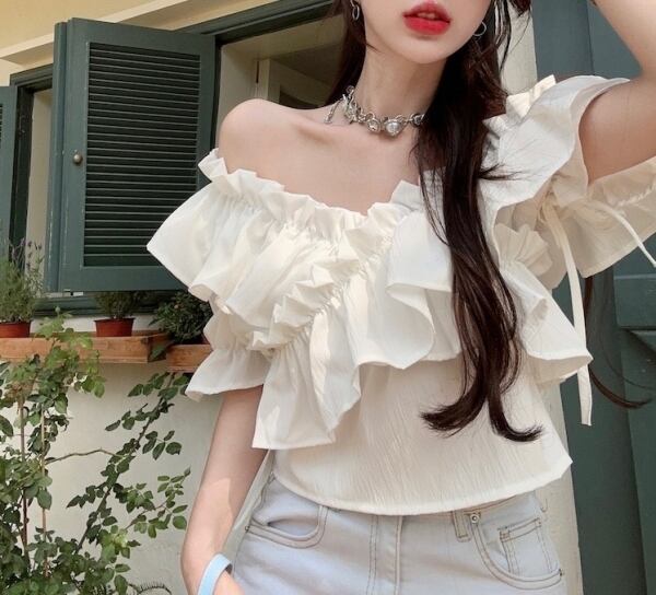 袖リボンフリルブラウス