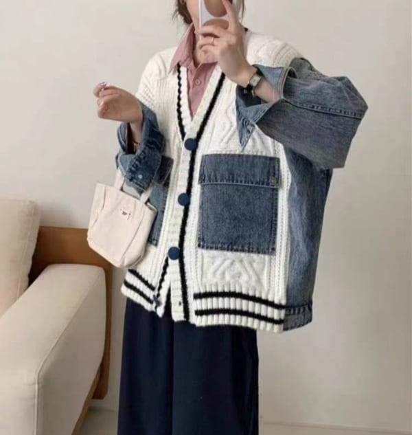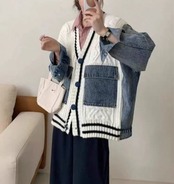 カーディガンデニムドッキングニット