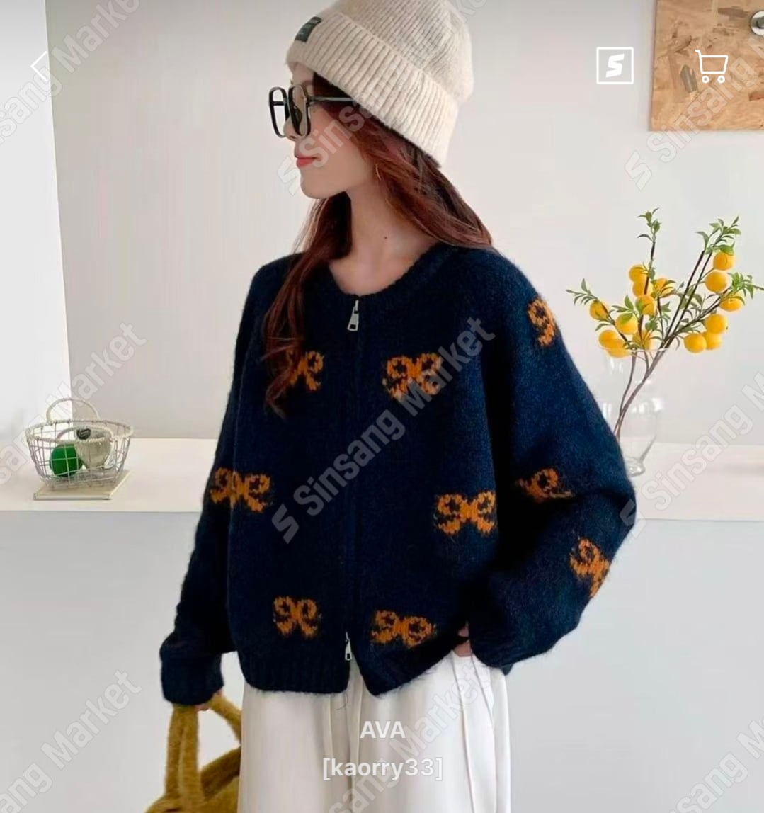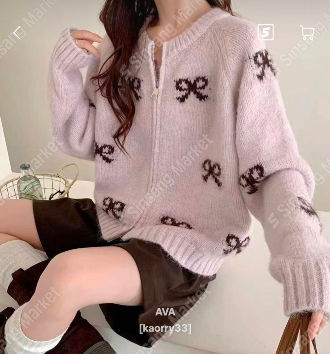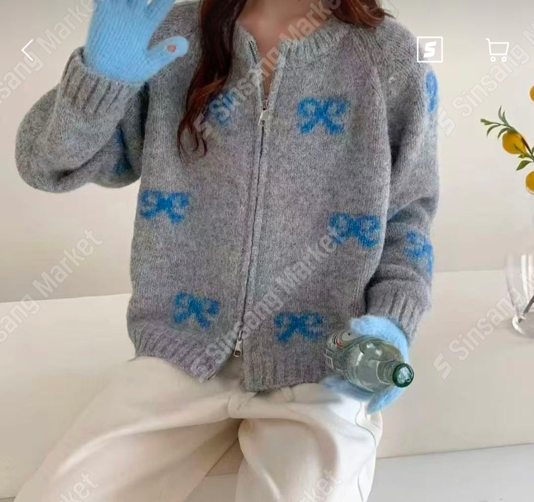リボンムードニットジップアップ