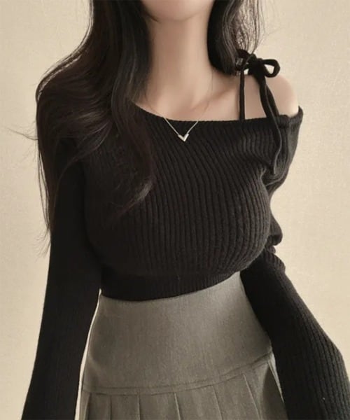 オフショルストラップニット