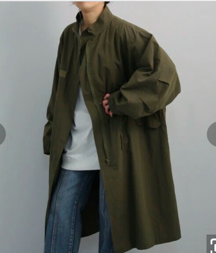オーバーシルエットのモッズコートスタンドカラーなのでハイネックやパーカーとの合わせもしやすいのもポイントです!