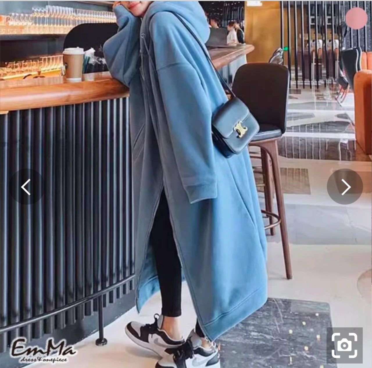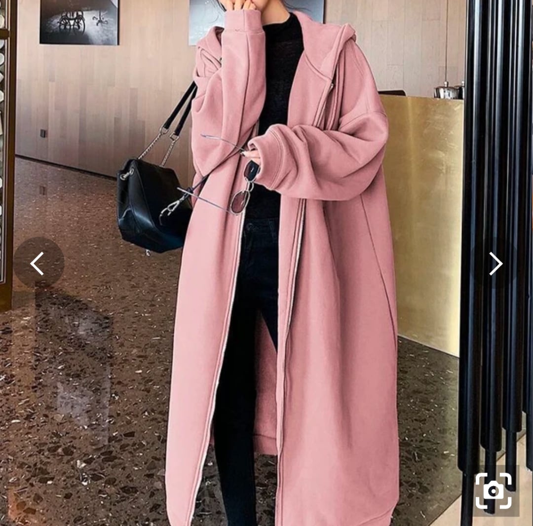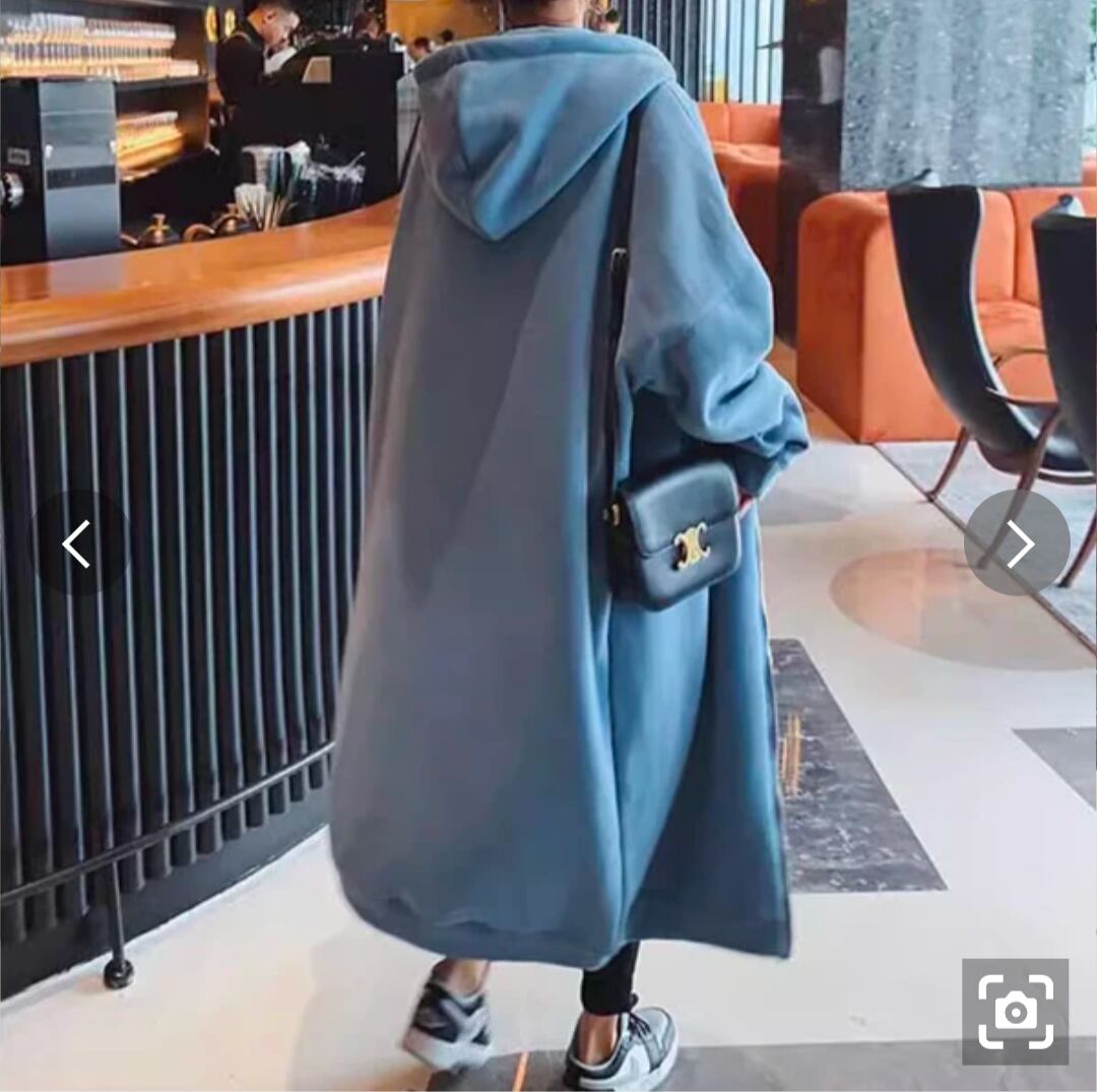 ロング丈のスウェットパーカー。