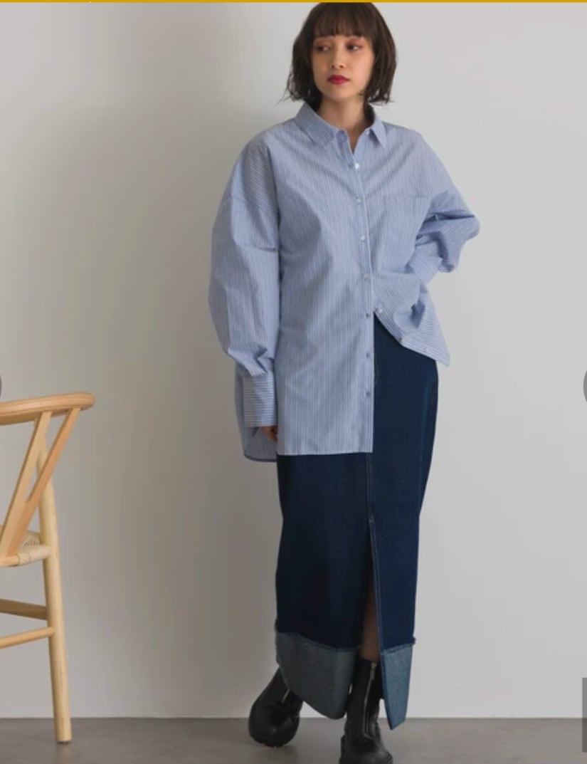 細身のデニムやスキニーと合わせるだけでバランス良く決まるビッグシャツ