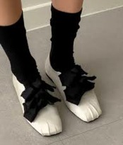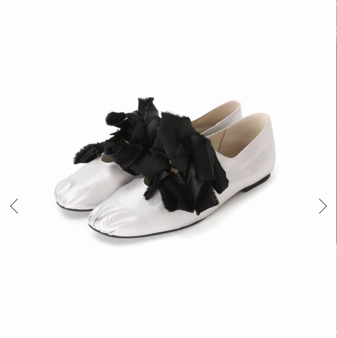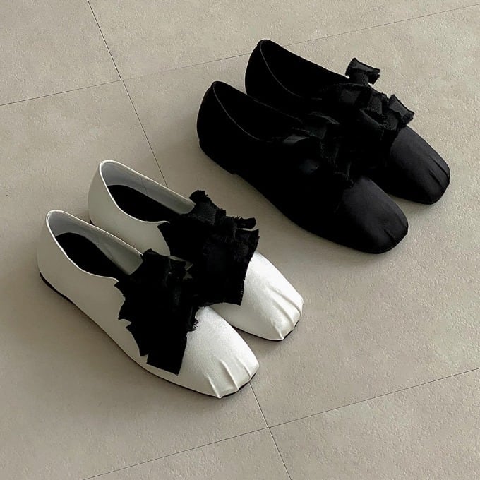 上品なサテン素材とキュートなリボンデザインが魅力のサテンシャーリングリボンバレリーナシューズ。女性らしいシルエットを引き立てる絶妙なデザインで、普段使いはもちろん、特別な日のコーディネートにもぴったりです。柔らかな素材感は足に優しく、履き心地も抜群。シャーリングディテールが足元を華やかに演出し、どんなスタイルにもマッチします。