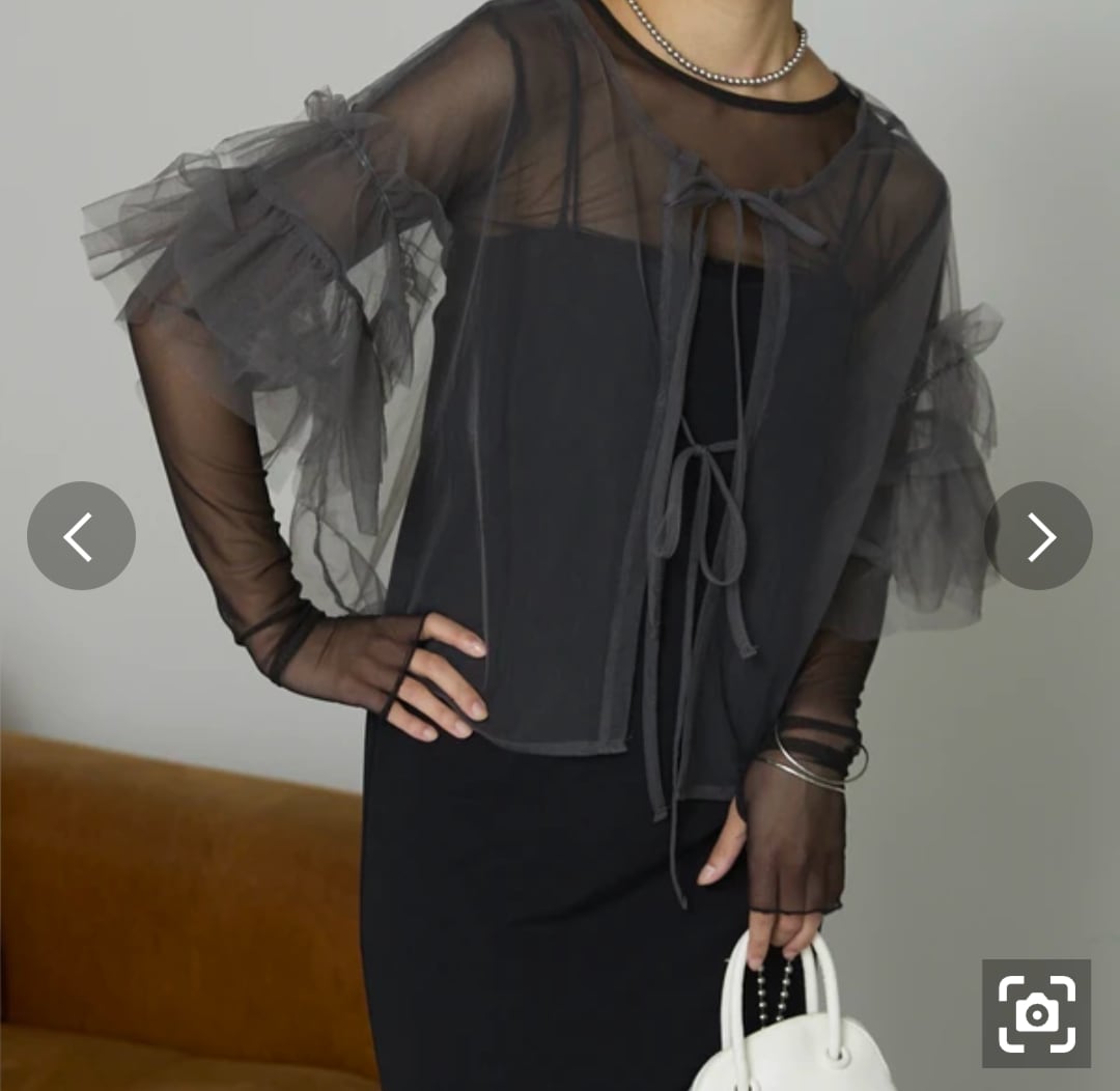 【ボリュームたっぷりチュールの大人可愛いシアートップス】
