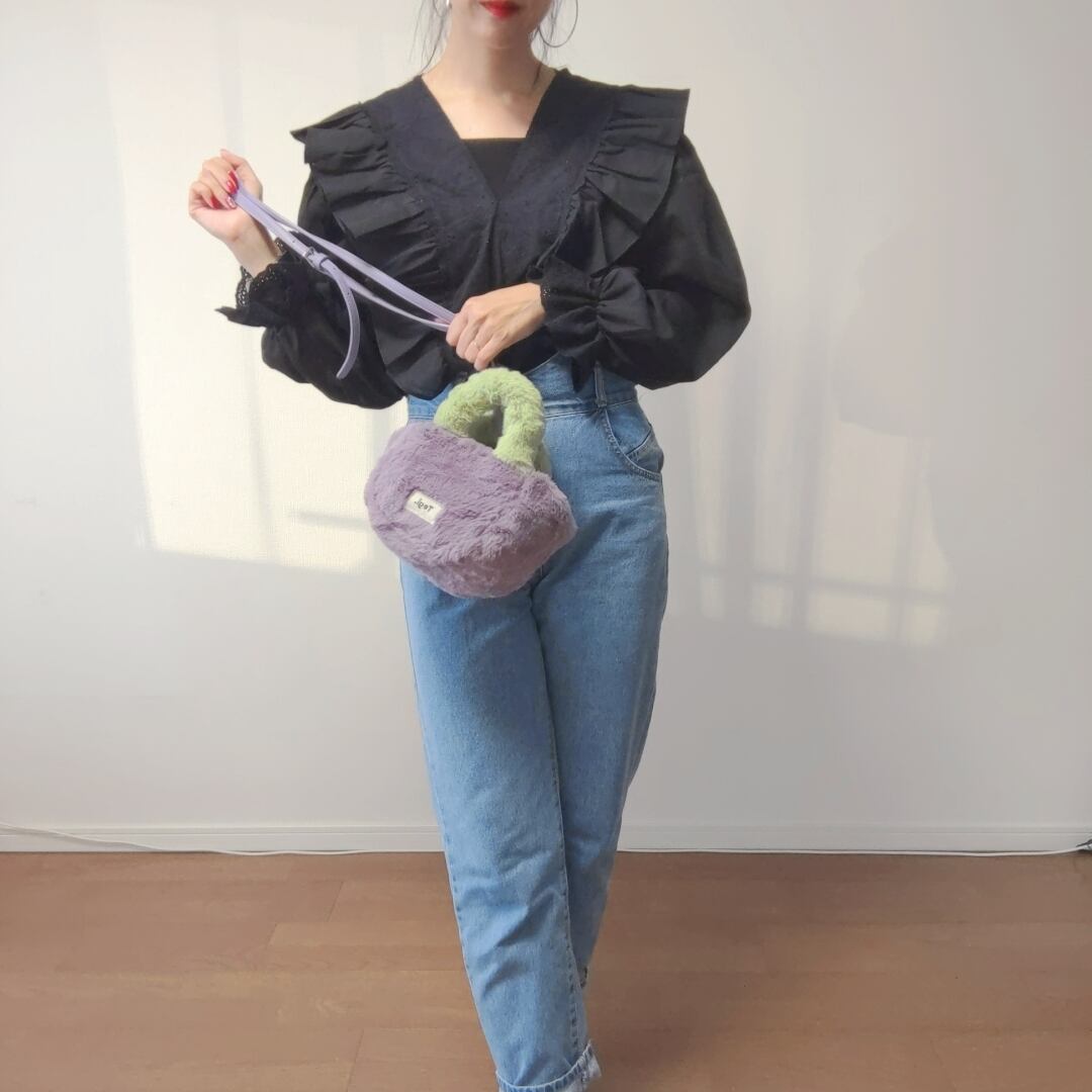 ファーバッグやデニムと相性がいいです。