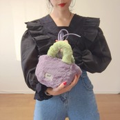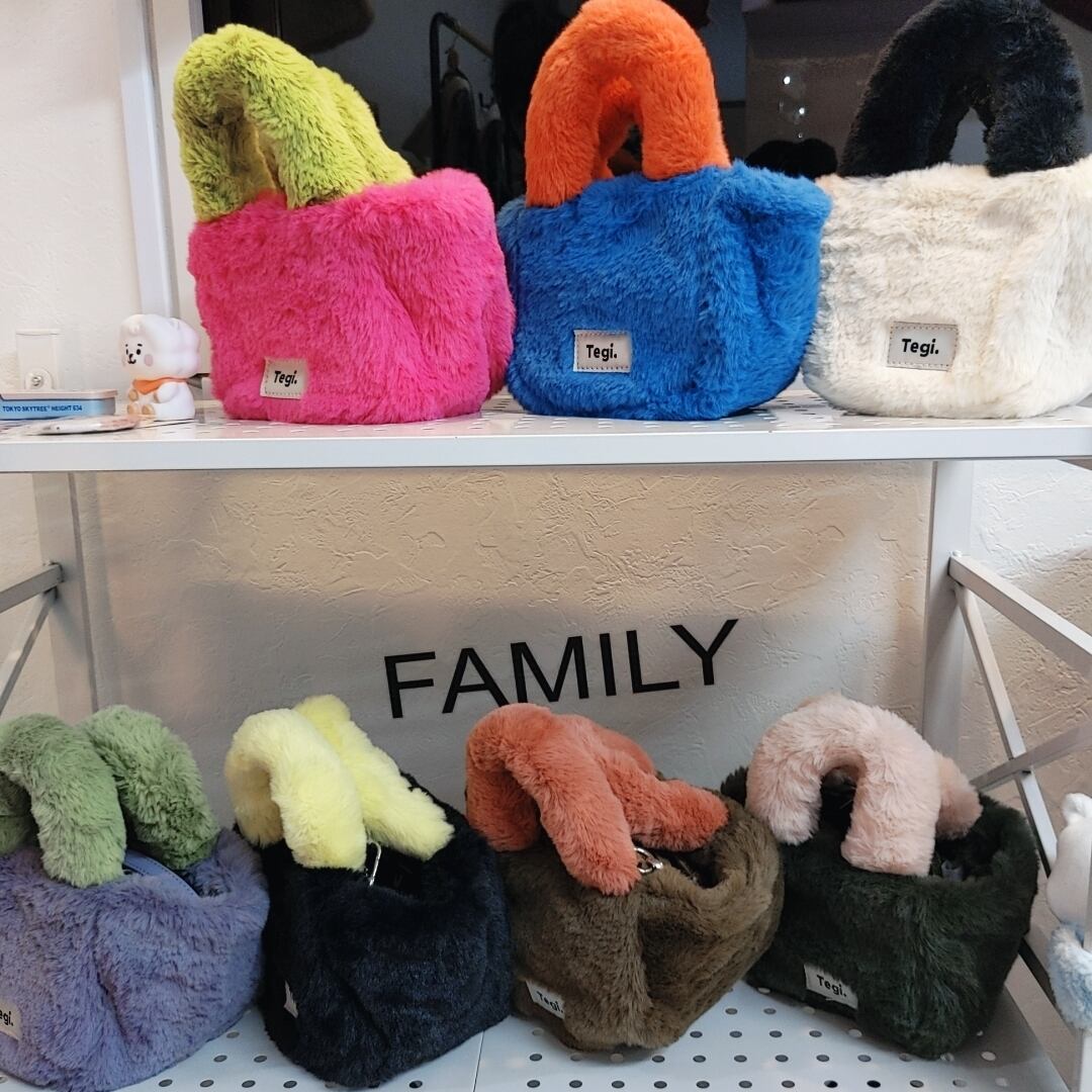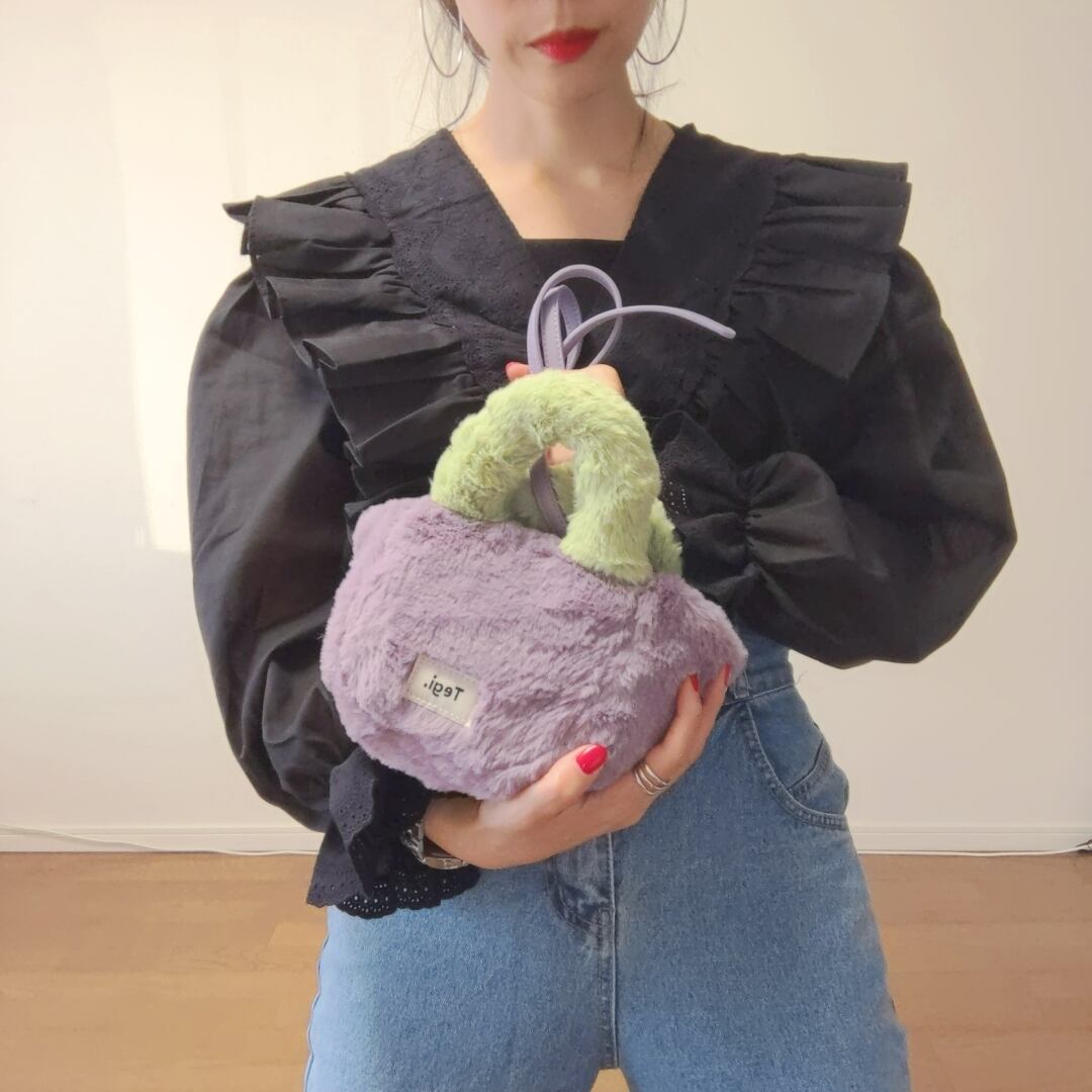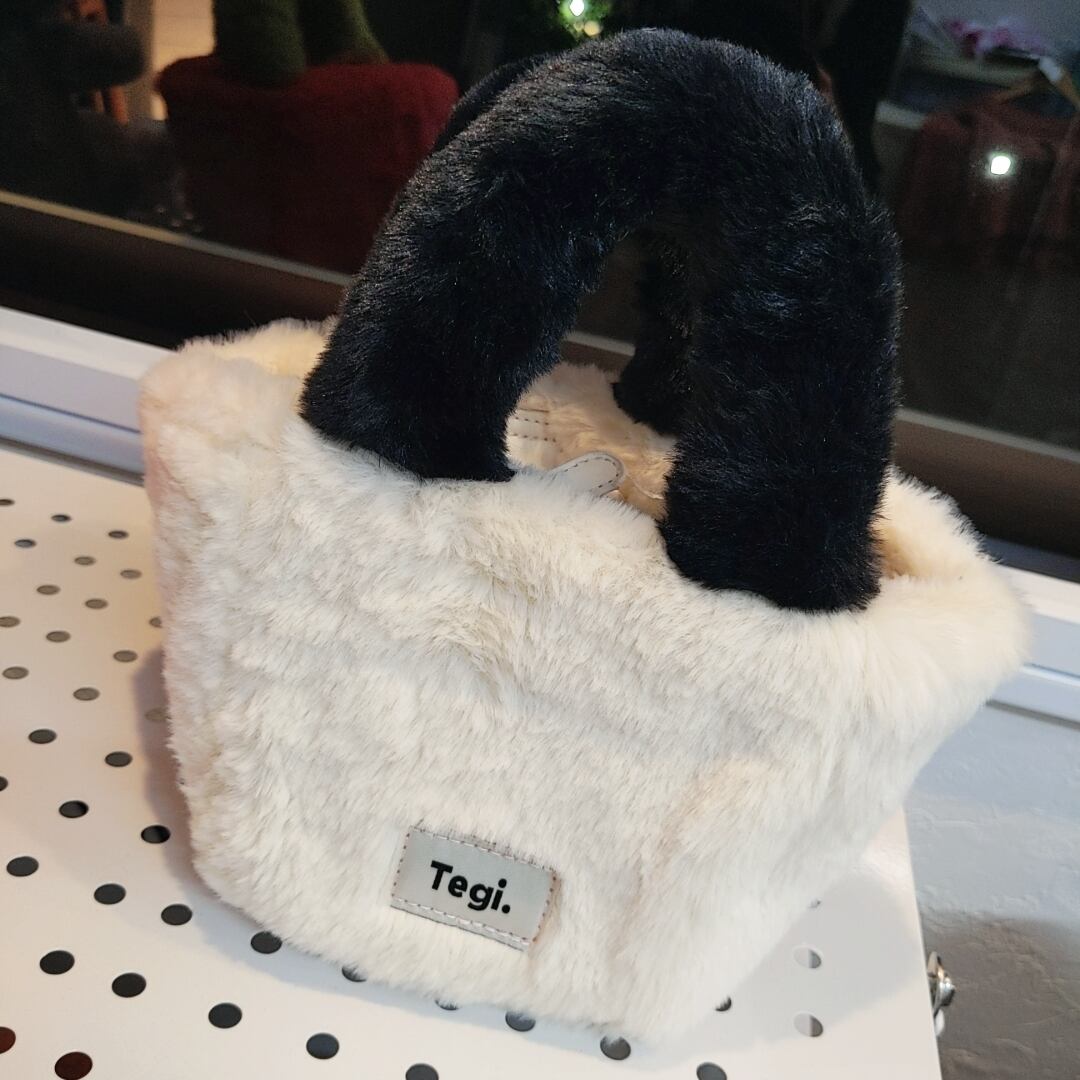 斜めがけにもできるストラップつき。ストラップの色がバッグと同じ色でそこもポイント♡