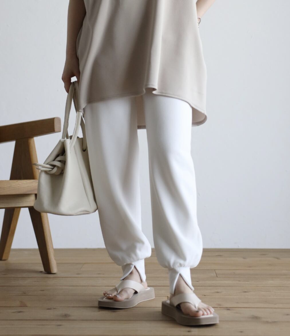 スリットが後ろに来るのが通常ですが、前後どちらがスリットでも履けるパンツです。低身長さんでも履けるのでおすすめ♡