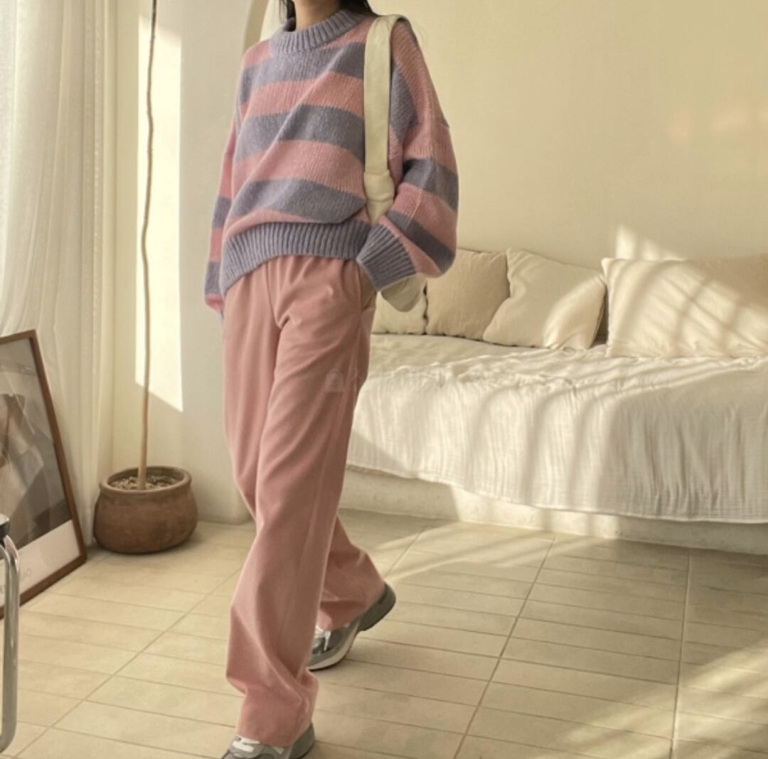ボーダー好きさんおすすめ。パンツスタイルでかっこよく、スカートで可愛らしく色でも雰囲気変えれてわくわくします。おすすめニットです。