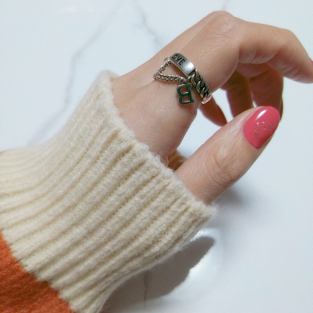 チェーンにBがぶら下がってる可愛らしいリングです。