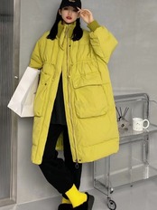 首元と手首のリブとビッグポケットがポイントのかわいいダウンです。韓国っぽいデザインでおすすめ♡