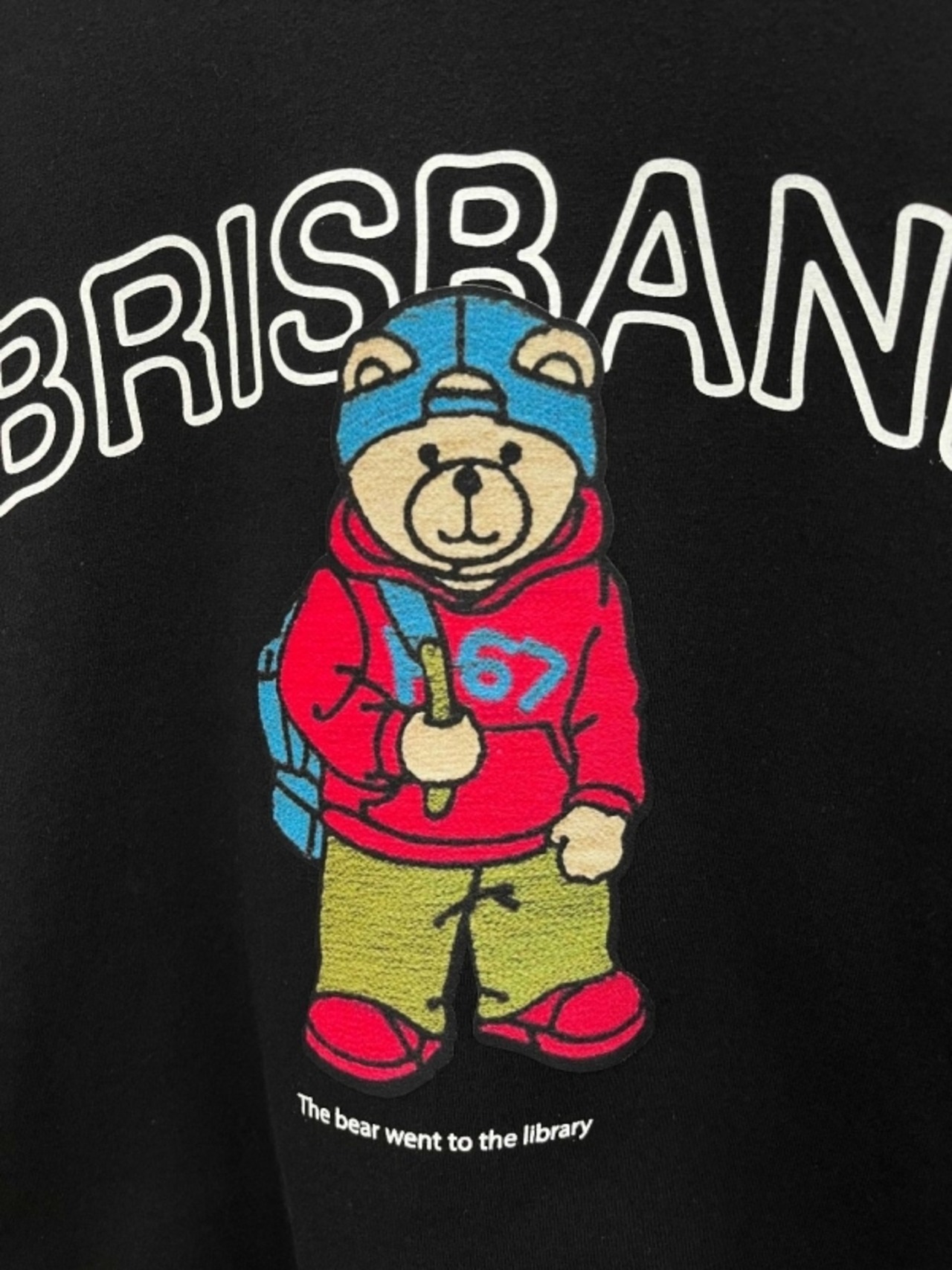 前回はフーディーでしたが今回はフードなしです。チュールスカートやデニムやいろんなコーデができるのでおすすめ。わけわからないゆるいくまちゃんがかわいいです。