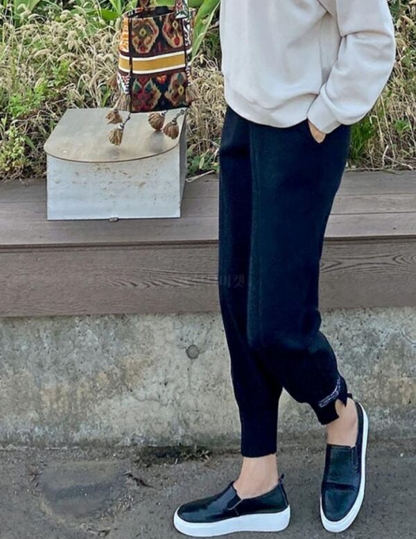 ポケットあり。ウエストゴム。形がかわいすぎるパンツです。