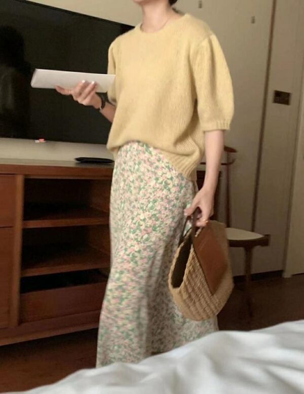 夏のニットは可愛らしくて好きです♡スカートやパンツどちらもかわいいですよ♡