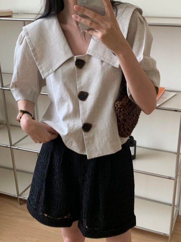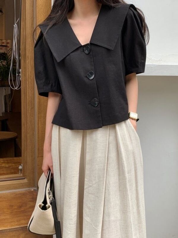 襟とボタン大きめがポイントでかわいいですよ。