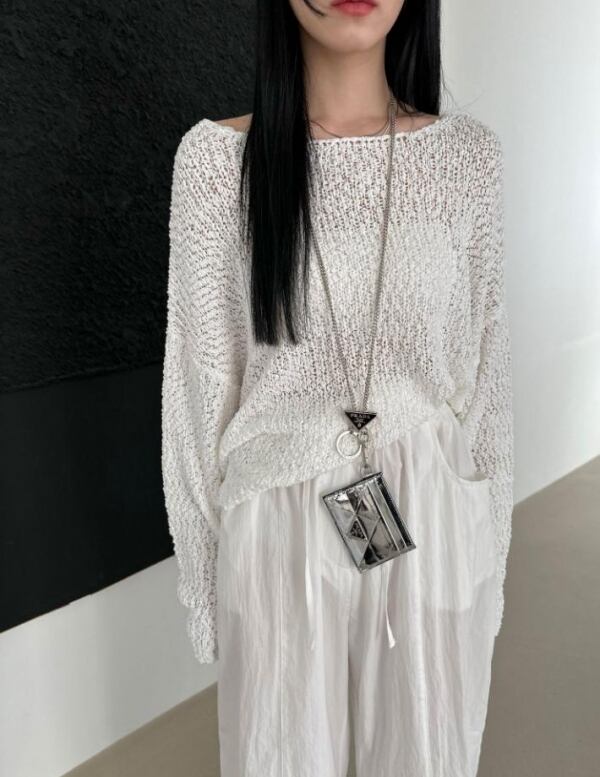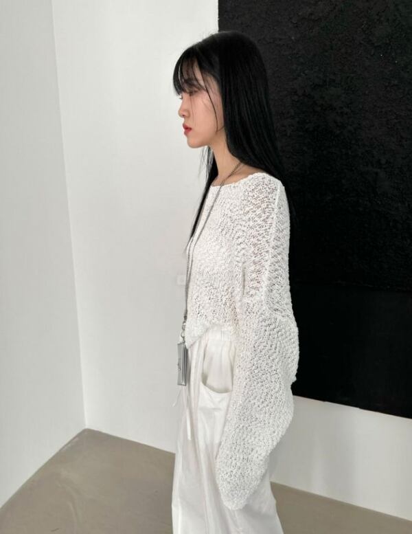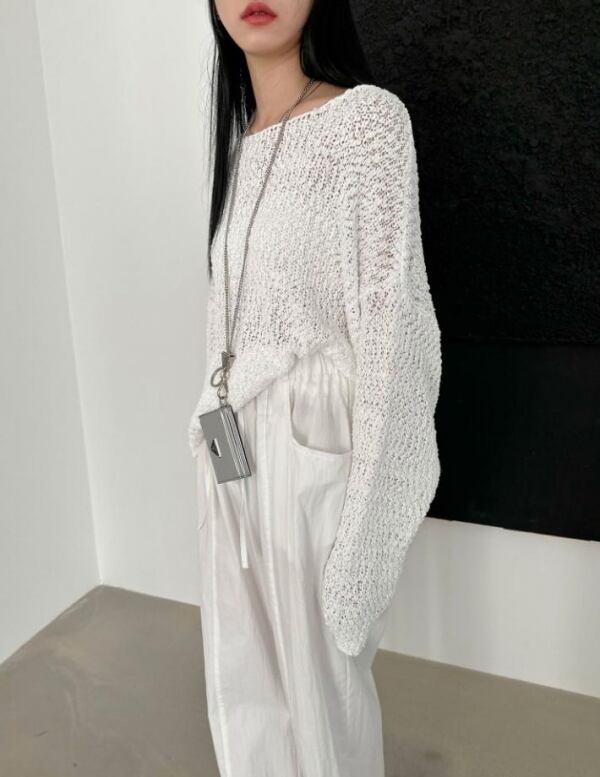 大きめサイズで気持ちいい素材の透かし編みニット♡