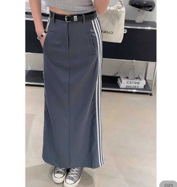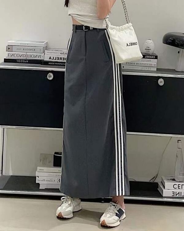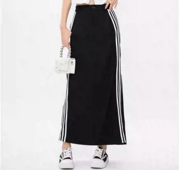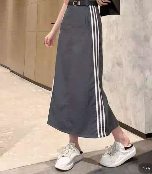 サイドラインがインパクトのスカート♡スポーティーでかわいく着れるアイテム。バックスリットがはいってます。