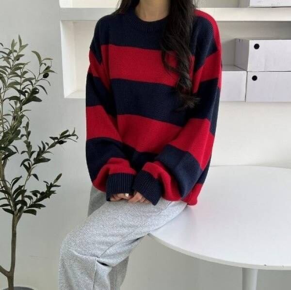 カラーボーダーニット
