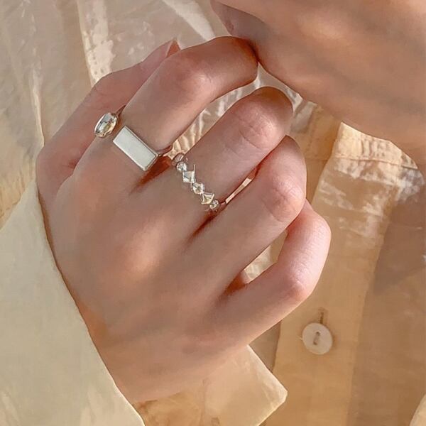 高見えな大人なリング。シンプルなコーデに合わせてインパクトに。