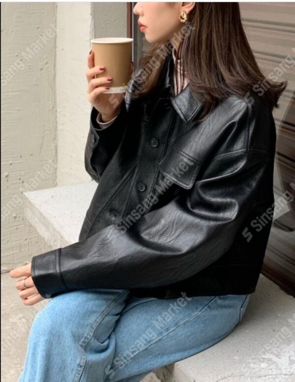 ほどよいサイズ感のフェイクレザーのジャケットです。