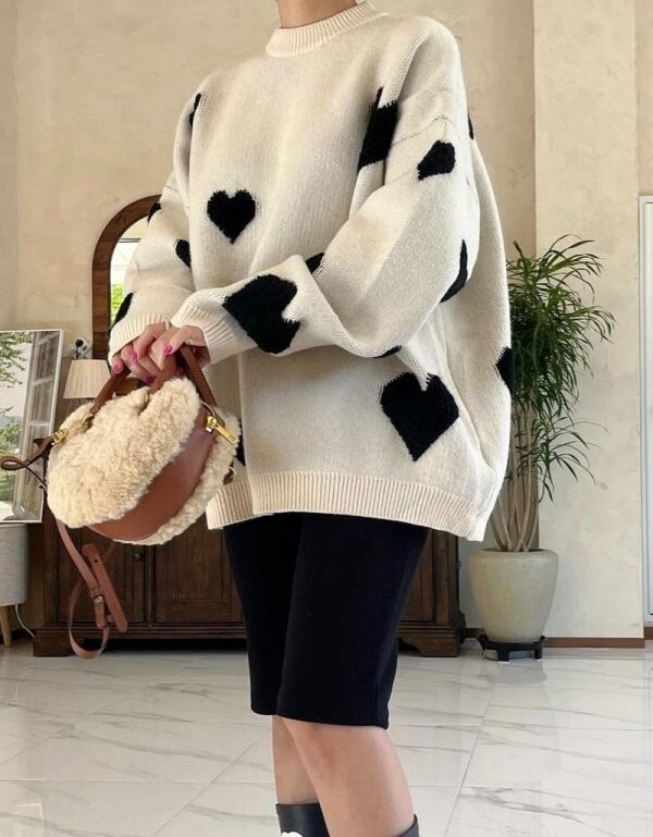 不揃いなハートがかわいいニット♡ハートが揃ってない所がかわいいポイント♡