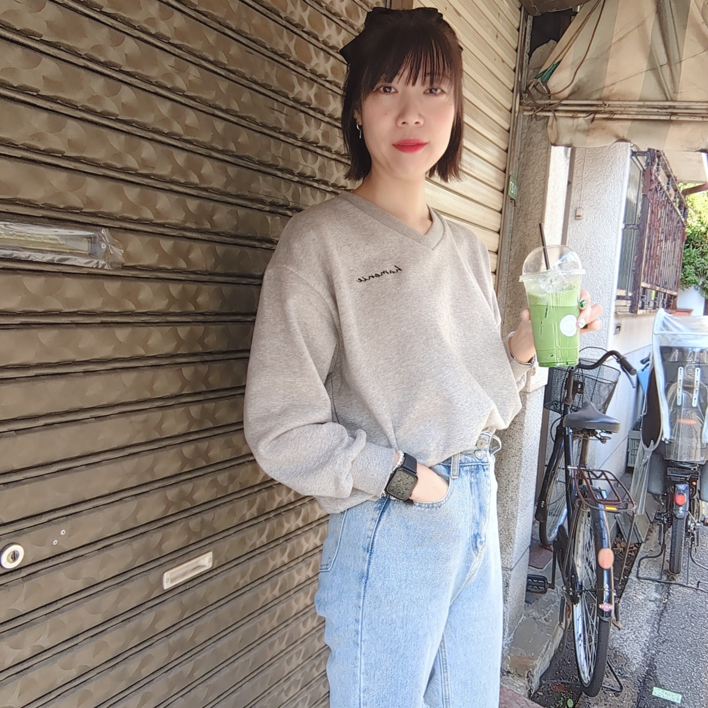 薄手の裏起毛♡Vネックとロゴがかわいいです♡