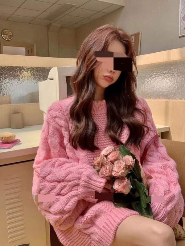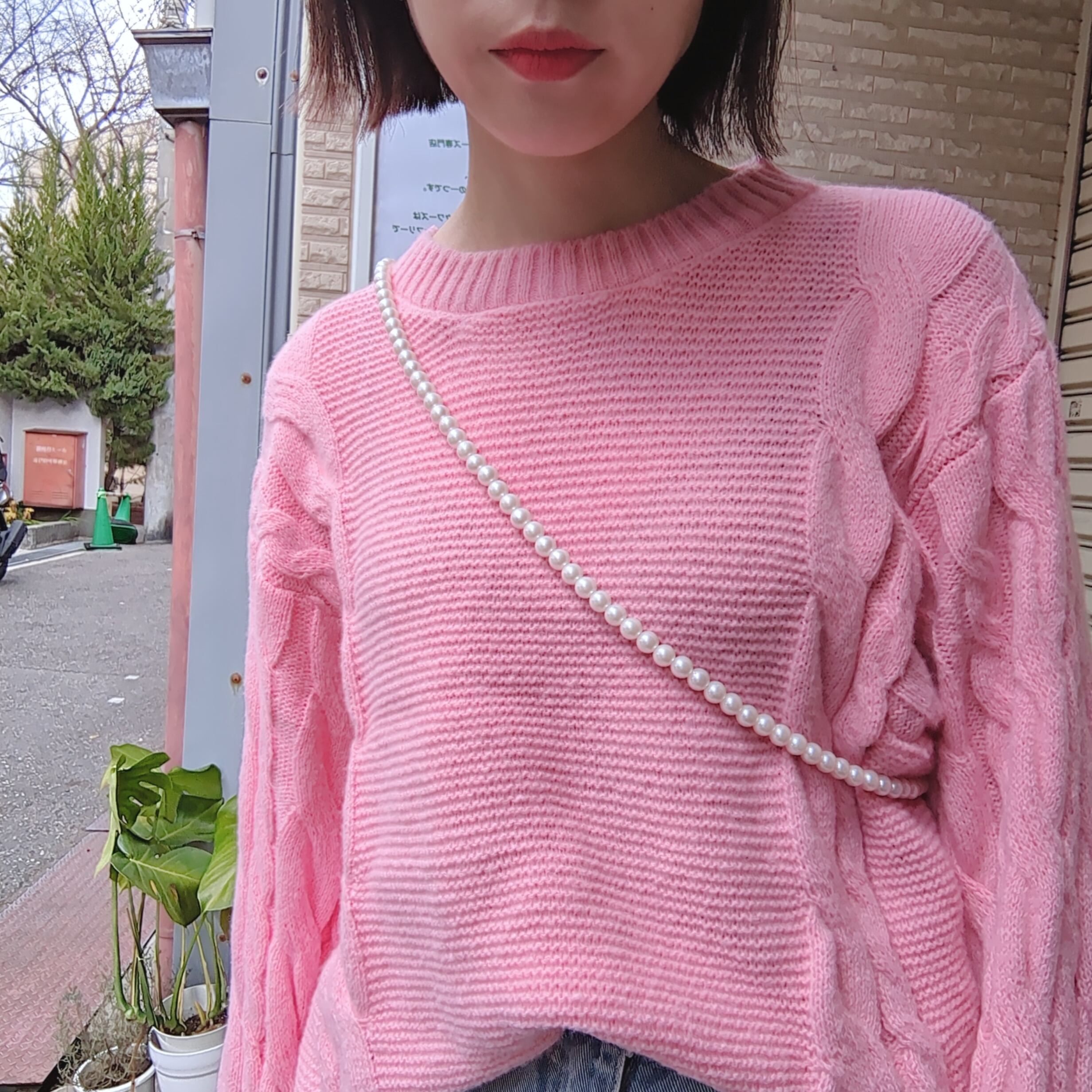 袖のケーブル編みが可愛くてすきです。ピンクのみ♡