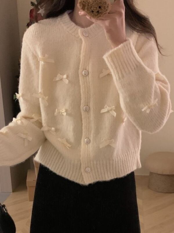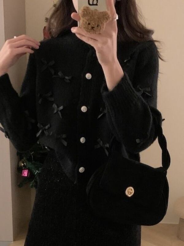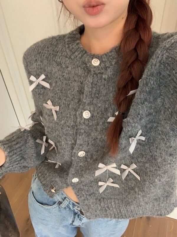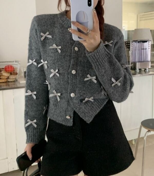 りぼんが前部分についたかわいいニット♡ほどよいショート丈なのでスカート合わせがおすすめ♡