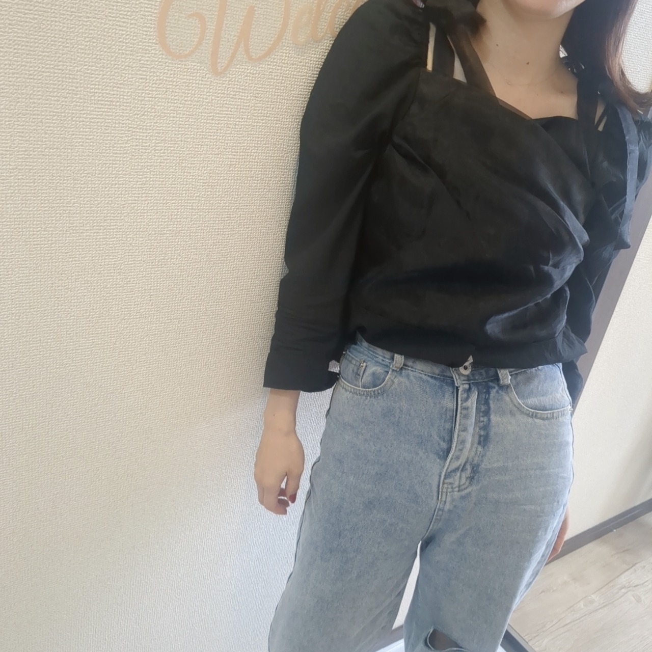 チュール付きりぼんブラウス