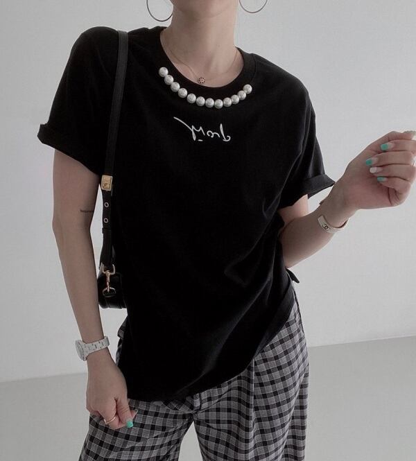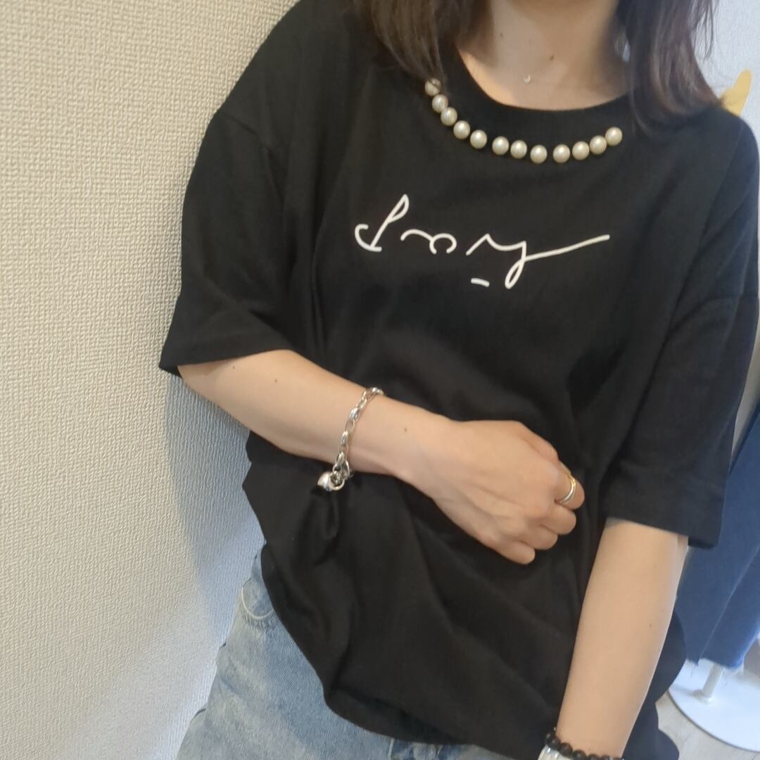 さり気なくついたパールがかわいいシンプルTシャツ♡