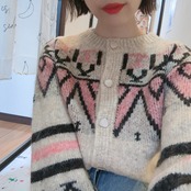 柄のカーディガンなので、モデルさんみたいに重ね着をしてもかわいいです。