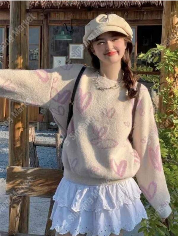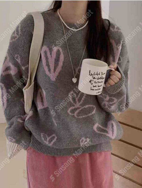 手書き風のハートがランダムに書いてあるかわいいニット♡